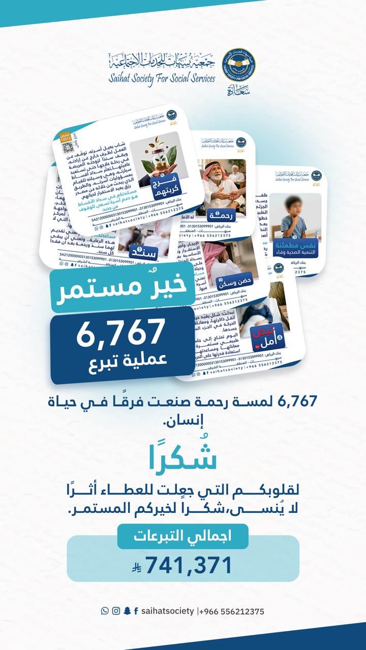 وأسهمت هذه المبادرة في تقديم دعم إجمالي بلغ ,741,371, ريالًا، خُصصت لمساندة 20 حالة إنسانية تُعد من الأشد احتياجًا، ما كان له أثر مباشر في تحسين أوضاعهم والتخفيف من معاناتهم.