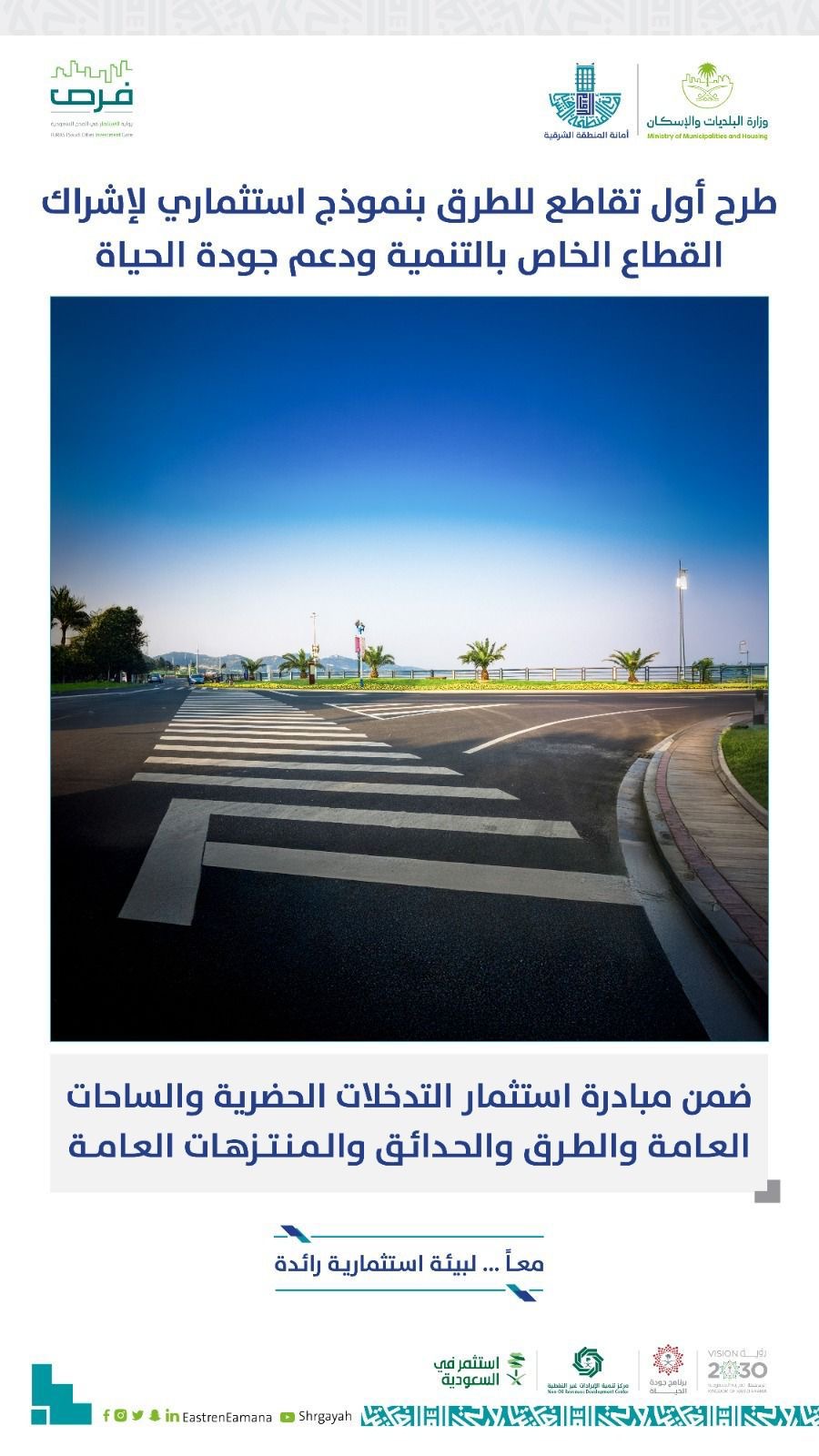 طرحت أمانة المنطقة الشرقية، أول فرصة استثمارية لتطوير تقاطع طرق بمدينة الدمام، في خطوة نوعية غير مسبوقة على مستوى المنطقة الشرقية، وذلك في إطار جهودها المستمرة لتعزيز شراكة القطاع الخاص في مشاريع التنمية الحضرية، وتحسين جودة الحياة، وتطوير المشهد الحضري، ورفع كفاءة الخدمات العامة، بما يتماشى مع توجهات رؤية السعودية 2030.