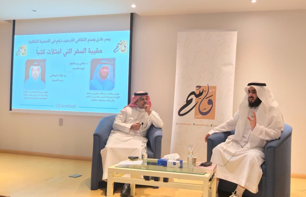 واصل نادي وسم الثقافي تقديم برامجه النوعية بأمسية جديدة حملت عنوان “حقيبة السفر التي امتلأت كتباً”، استضاف فيها الكاتب والطبيب الرحالة الدكتور سامي بن مشوح مساء الأربعاء في قاعة الجزيرة بغرفة الشرقية.