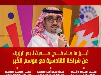 وبهذه المناسبة، صرّح رئيس مجلس إدارة شركة نادي القادسية الأستاذ بدر الرزيزاء قائلاً: “نتقدم بجزيل الشكر لقيادتنا الرشيدة حفظها الله التي جعلت المواطن محور التنمية في مختلف مناطق المملكة، وبدعم سمو أمير المنطقة الشرقية وسمو نائبه حفظهم الله وحرصهما على تمكين المبادرات النوعية التي تخدم المجتمع وترتقي بجودة الحياة، والذي يعكس رؤية طموحة لتفعيل الفضاءات العامة وتعزيز جودة الحياة في المنطقة. وتأتي مشاركة القادسية في هذا الموسم من منظورٍ استراتيجي يعزز هوية النادي كنادٍ لأهل الخبر، فهم المشجعون والجماهير الذين يشكّلون أساس وجودنا.”