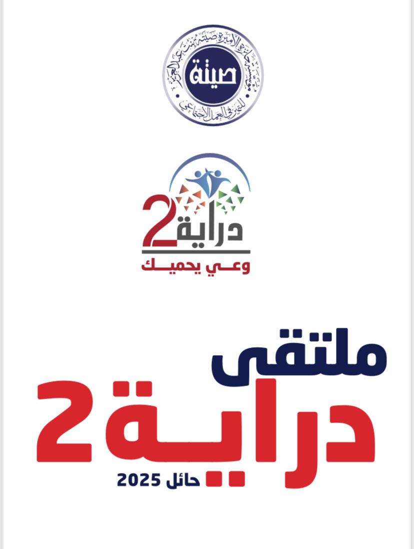 برعاية أمير منطقة حائل صاحب السمو الملكي الأمير عبدالعزيز بن سعد بن عبدالعزيز آل سعود تتواصل استعدادات جائزة الأميرة صيتة بنت عبدالعزيز للتميز في العمل الاجتماعي لتنظيم النسخة الثانية من ملتقى دراية ” ماذا لو .. كيف تتصرف ” خلال الفترة من ٢٥ وحتى ٢٧ أكتوبر الجاري، وذلك بمركز المغواة بمدينة حائل. ويشارك في الملتقى أكثر من ٤٥ جهة تُمثّل عدد من الجهات الحكومية والأهلية والشركات والمؤسسات ومنظمات المجتمع المدني وجمع من الأكاديميين والإعلاميين والمهتمين بالشأن الاجتماعي والثقافي.
