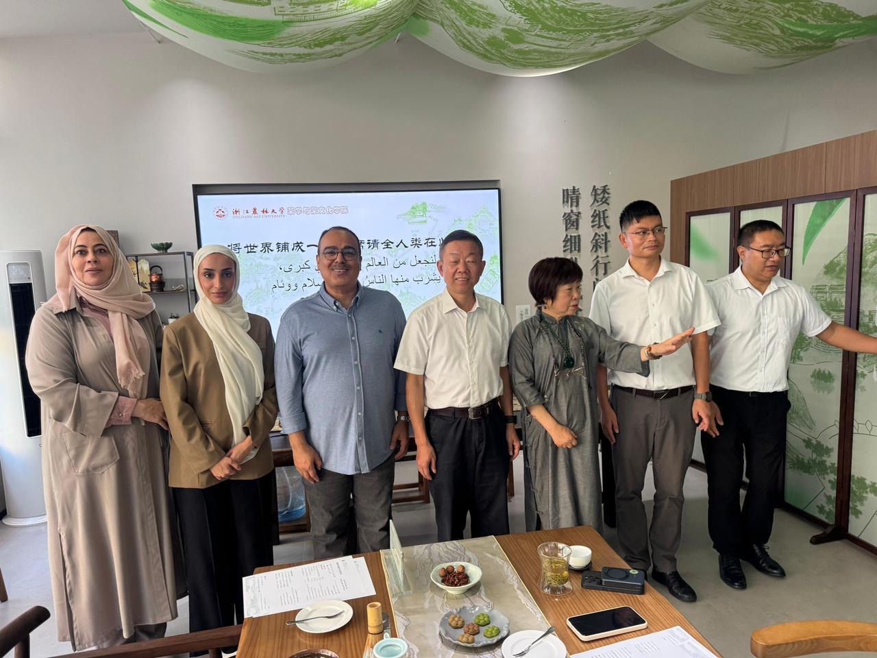 التقى وفد المعهد بعدد من قيادات الجامعة، من بينهم الأستاذ وو جيانشينغ رئيس الجامعة،والأستاذة وانغ شوفنغ العميدة الفخرية لمعهد التراث الثقافي غير المادي، والأستاذة وانغ ليمديرة مكتب الشؤون الدولية، والأستاذ جيانغ تينغ نائب مدير قسم العلوم الإنسانية، إلى جانبأساتذة من كلية علوم وثقافة الشاي.