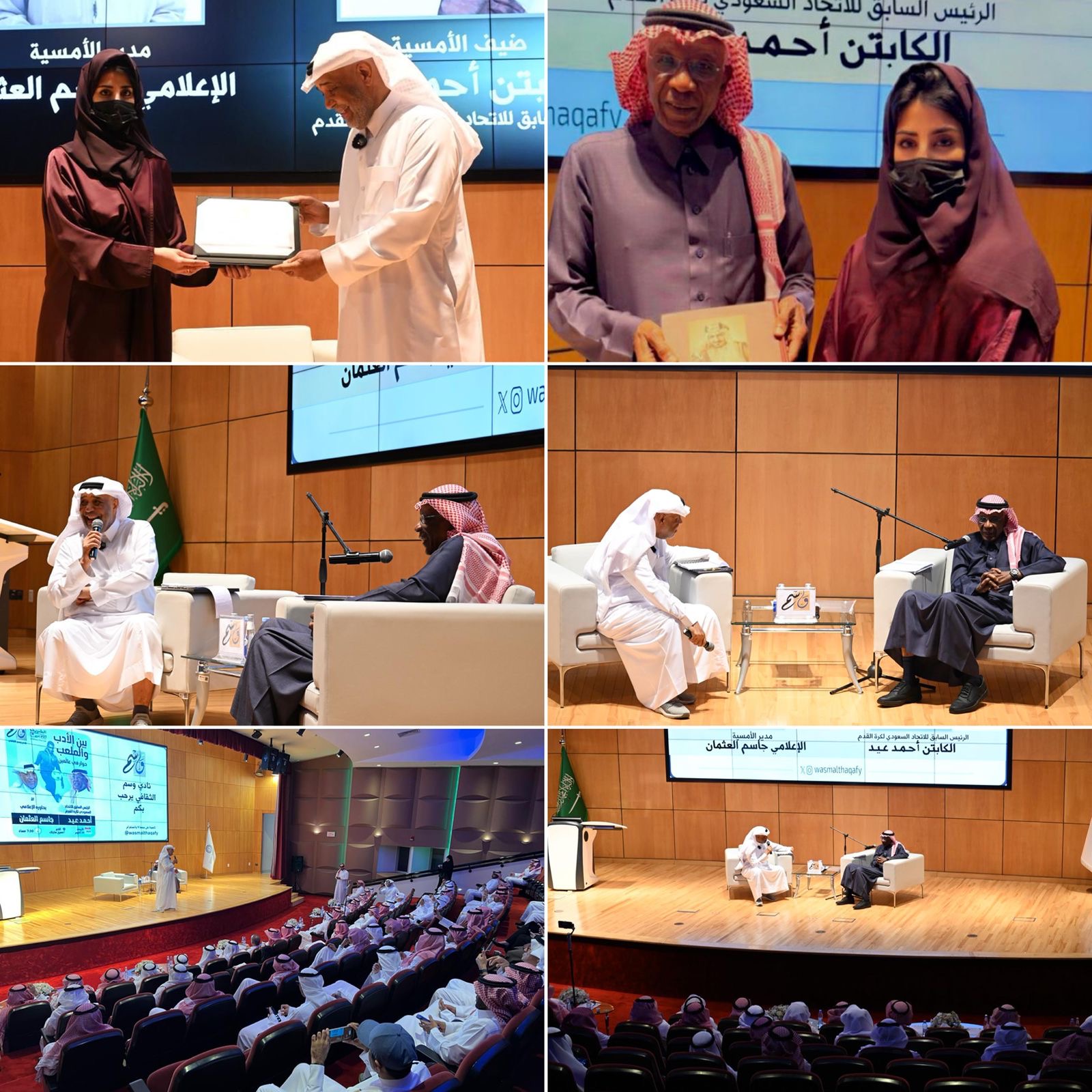 وخلال الأمسية، تحدّث أحمد عيد عن العلاقة المتبادلة بين الرياضة والثقافة، مستعرضًا تجربة الأمير عبدالله الفيصل بوصفه نموذجًا فريدًا جمع بين دعم الرياضة وإثراء الأدب، مؤكّدًا أن الإبداع الإنساني واحد مهما اختلفت ميادينه.
