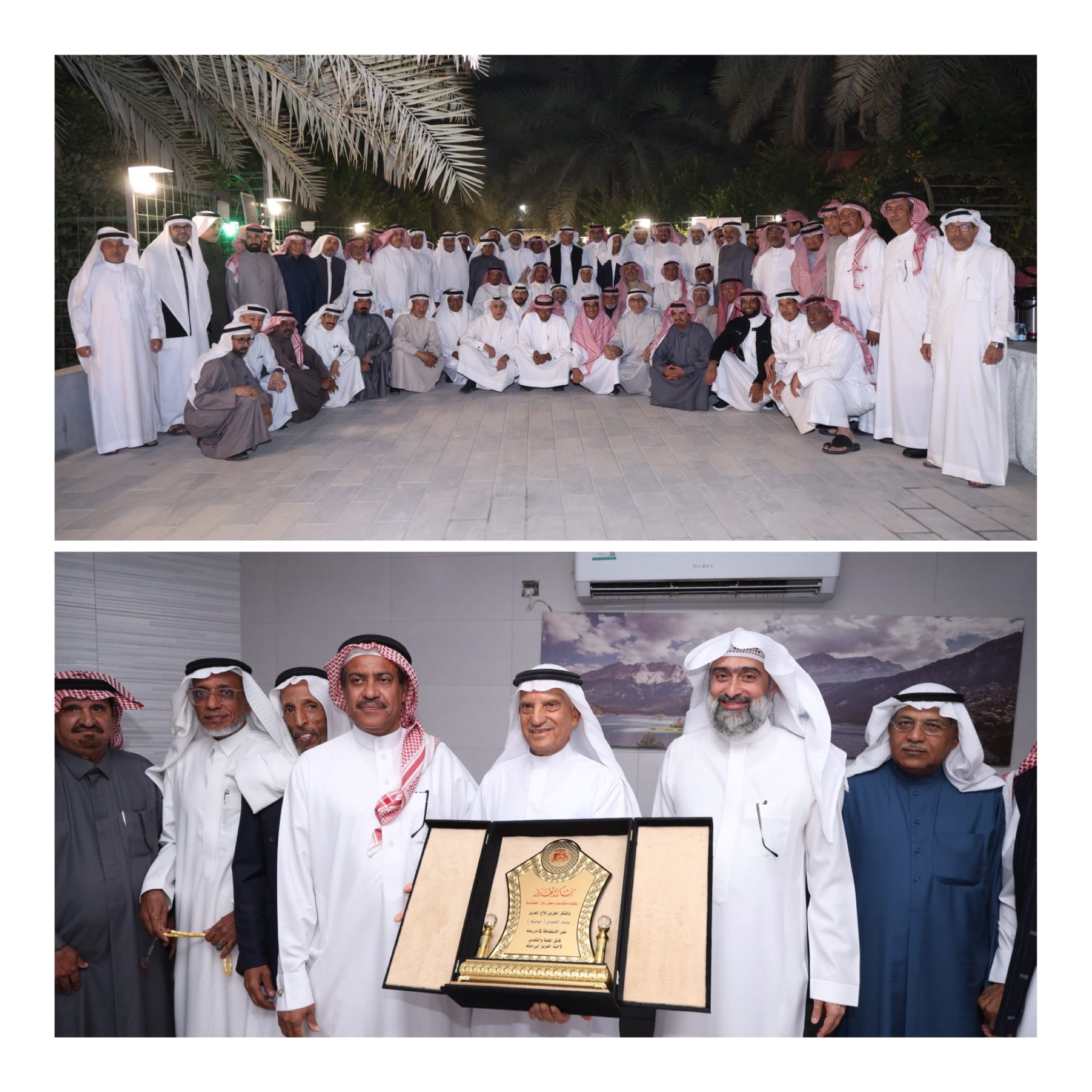 بعد ذلك تم تقديم درع باسم المجموعة لصاحب المزرعة الأستاذ يوسف الحمودي، بعد ذلك تفضل الجميع على وجبة العشاء المقامة لهذه المناسبة..