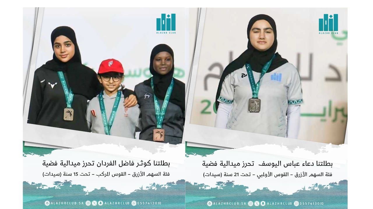 كما أحرزت اللاعبة دعاء عباس اليوسف ميدالية فضية في فئة السهم الأزرق – القوس الأولمبي – تحت 21 سنة (سيدات)، في إنجاز يؤكد قدرتها على المنافسة وتحقيق النتائج في البطولات الكبرى.