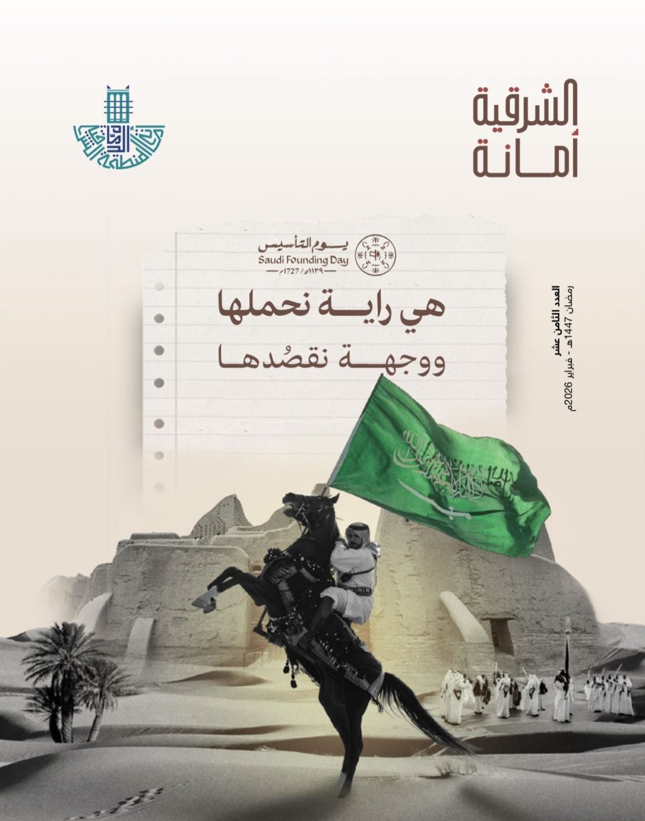 بمناسبة يوم التأسيس السعودي، أصدرت أمانة المنطقة الشرقية العدد الثامن عشر من مجلتها الدورية “الشرقية أمانة” (لشهر رمضان 1447هـ – فبراير 2026م)، مشتملًا على مجموعة واسعة من التغطيات والمقالات التي توثق الماضي العريق وتستشرف المستقبل التنموي الذي تشهده المملكة، وتحديدًا في مدن ومحافظات المنطقة الشرقية، وتسلّط الضوء على المنجزات الوطنية والمشاريع التنموية التي نُفّذت.