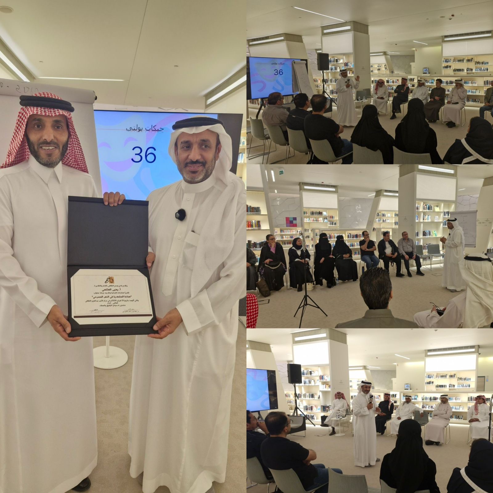 اختتم نادي وسم الثقافي مساء يوم امس الأربعاء ، ورشته التدريبية المتخصصة بعنوان «صناعة المشهدية في النص المسرحي»، والتي قدّمها الكاتب والمدرب أ. يحيى العلكمي، وذلك مساء الأربعاء 25 فبراير 2026م، في مركز الملك عبدالعزيز الثقافي العالمي (إثراء)، بمقر قسم الأدب الإنجليزي.