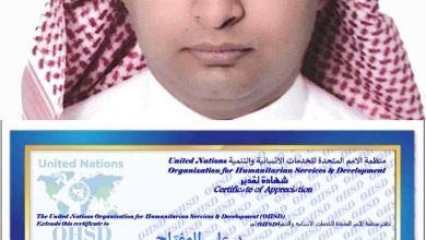 السفياني يهنئ الدكتورة مشاعل العصيمي بمناسبة تكريمها من قبل المنظمة الدولية للعمل التطوعي (I-O-V)