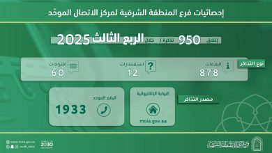 محليات  إنجاز 950 بلاغاً بفرع الشؤون الإسلامية بالشرقية خلال الربع الثالث من 2025الدمام – ابراهيم بوعبيد أنجز فرع وزارة الشؤون الإسلامية والدعوة والإرشاد بالمنطقة الشرقية، ممثلاً بوحدة خدمةالمستفيدين، 950 تذكرة بلاغ خلال… أكمل القراءة »